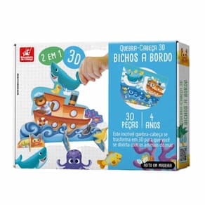 Quebra-cabeça 3D - Bichos a Bordo - Madeira - 2655 - Brincadeira De Criança Quebra-cabeça 3D - Bichos a Bordo - Madeira - 2655 - Brincadeira De Criança