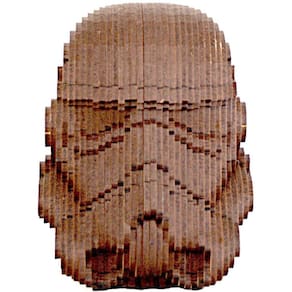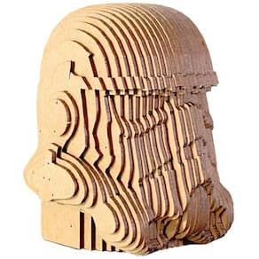 Escultura em madeira, fabricada em mdf através de tecnologia de corte a laser. São diversas lâminas de madeira que, ao serem unidas dão volume e formato ao objeto. Toda a parte estrutural da réplica precisa ser colada com cola preferencialmente para madeira, tipo cola branca, cola instantânea, cola tipo cascorez, entre outras. O produto é enviado totalmente desmontado, mas sua montagem é simples, basta seguir as instruções contidas no manual de montagem. Enviado em mdf natural sem pintura O objeto não tem nenhum tipo movimento e/ou partes móveis, sendo o mesmo utilizado meramente como adorno para colecionadores e aficcionados.