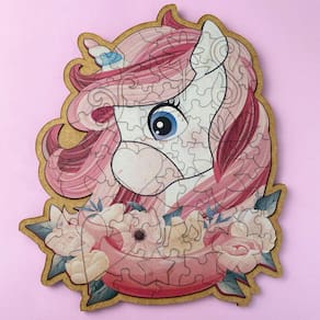 Quebra Cabeça 84 Peças MDF Com Moldura Brinquedo Infantil Nível Intermediário Unicórnio. #Brinquedo educativo +3 anos #Linha artesanal Sulartes #Desenvolve o raciocínio Garantia: 90 Dias / Peso: 300g / Cores: Marrom claro, rosa, verde, azul e branco / Ref: 110QBRKBCAUNI Dimensões do quebra cabeça: 24cm (C) x 29cm (L) x 0,3cm (A) Dimensões da moldura: 25cm (C) x 30cm (L) x 0,6cm (A) Dimensões da maior peça: 5cm (C) x 6cm (L) Dimensões da menor peça: 2cm (C) x 1,5cm (L) Espessura das peças: 3mm Quantidade de peças: 84 Estampa: Unicórnio. Idade recomendada: +3 anos. Nível: Intermediário. Itens inclusos: - 01 Moldura com apoio de mesa; - 84 Peças de quebra-cabeça; - 01 Embalagem. Limpeza e cuidados: - Não recomendável para menores de 3 anos por conter peças pequenas que podem ser engolidas; - Não exponha sob luz direta do sol, pois este é prejudicial à longevidade do produto; - Lave com pano levemente umedecido com água, seguido de pano seco; - Não utilizar produtos químicos ou abrasivos na limpeza; - Não submergir em água. Detalhes do produto: - Acompanha uma moldura com suporte que permite apoiá-lo sobre a mesa após concluída a montagem; - Desenvolvidos em MDF com acabamento em melamina seladora (protege contra a umidade); - As estampas são impressas diretamente no MDF (sem adesivo); - Possui peças com dimensões e formatos variados. Materiais: - Melamina; - Silicone; - MDF. Mais que um passatempo divertido para toda família, este quebra cabeça infantil com nível intermediário desenvolve o raciocínio, coordenação motora e promove a interação entre crianças e adultos. Fabricado em MDF com acabamento em melamina seladora, super resistente contra umidade, o quebra cabeça de unicórnio com 84 peças, é bem colorido e divertido, com encaixes precisos que auxiliam as crianças durante a montagem. Acompanha ainda, uma moldura com apoio de mesa que permite deixar o quebra cabeça exposto sobre a bancada, decorando o ambiente. Marca: Sulartes