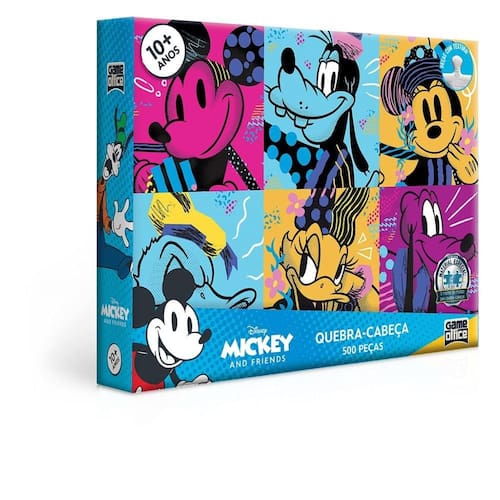 Quebra Cabeça A Turma do Mickey Mouse - Toyster Quebra-cabeça de 500 peças colorido e divertido de montar. Ao final da montagem você terá alguns dos personagens mais marcantes da Disney para guardar em sua coleção. Este quebra-cabeça vem com padrão internacional de qualidade e encaixe suave que pode ser sentido em cada peça! Selo Inmetro: 000517/2022 Ean: 7896054029424