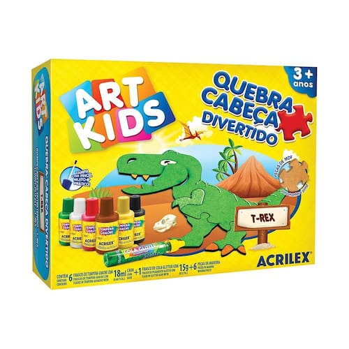 Quebra Cabeça Acrilex Divertido T-Rex Divirta-se nesta aventura pré-histórica. Solte sua imaginação, monte e pinte um feroz T-Rex. Peças de MDF para montar e pintar.