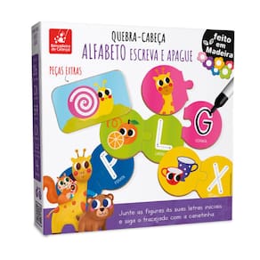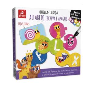 Contém: 26 Quebra-cabeças, total de 59 peças em madeira, 1 canetão e 1 apagador.