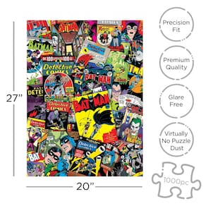 AQUARIUS Colagem de quebra-cabeças Batman DC Comics (quebra-cabeça de 1000 peças) - Mercadoria e colecionáveis oficialmente licenciados pela DC Comics - Sem brilho - Ajuste preciso - 50 x 68 cm - Desbloqueie o seu super-herói interior... Entre no universo DC com o Batman e suba ao desafio de concluir este quebra-cabeça de 1000 peças com uma colagem de capas de quadrinhos do Batman. O quebra-cabeça concluído mede 50,8 x 68,5 cm - Procurando presentes DC Comics? Este quebra-cabeça da DC é o melhor presente da DC Comics para fãs do Batman e fãs da DC de todas as idades. Perfeito para a família, noite de jogos, aniversários, feriados, crianças e adultos vão adorar recebê-lo - QUALIDADE PREMIUM EM QUE VOCÊ PODE CONFIAR: Nossa técnica de corte de precisão garante um ajuste perfeito de todas as peças de quebra-cabeça, praticamente não deixando poeira de quebra-cabeça. Usamos papel grosso de qualidade que é livre de brilho para que você possa mostrar sua obra-prima com orgulho - Mercadoria 100% licenciada oficialmente da DC Comics: todos os nossos quebra-cabeças DC Comics são projetados pela Aquário e são oficialmente autorizados pela Warner Brothers. São as peças perfeitas de recordações colecionáveis da DC Comics para adicionar à sua coleção - A promessa da Aquário: é simples. Garantimos nossos produtos 100% e se você não estiver completamente satisfeito com sua compra, ofereceremos um reembolso total! Clique no botão "Adicionar ao carrinho" hoje e compre com confiança