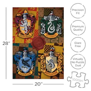 - DESBLOQUEIE SEU MAGO INTERIOR... Reúna a magia do mundo mágico com este quebra-cabeça de 1000 peças com tema de Harry Potter com os brasões das casas lendárias de Hogwarts: Grifinória, Sonserina, Ravenclaw e Hufflepuff. O quebra-cabeça mede 20 x 28 polegadas