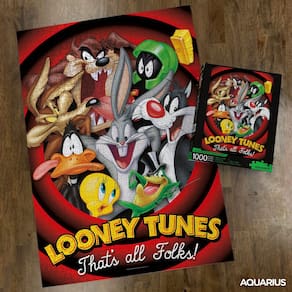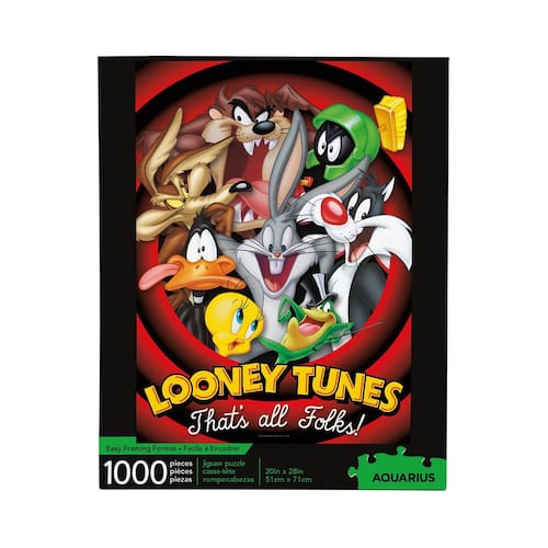 Quebra-cabeça AQUARIUS Looney Tunes (quebra-cabeça de 1000 peças) — Sem brilho — Ajuste preciso — Mercadorias e itens colecionáveis oficialmente licenciados da Looney Tunes — 20 x 28 polegadas — Quebra-cabeça de 1000 peças: junte seus personagens favoritos do Looney Tunes neste quebra-cabeça de 1000 peças com Bugs Bunny, Daffy Duck, Tweety, Taz, Wile E Coyote, Syll Vester, Taz e Marvin, o Marciano. O quebra-cabeça completo mede 20 x 28 polegadas - PROCURANDO PRESENTES LOONEY TUNES? Este quebra-cabeça Looney Tunes é o presente definitivo para fãs de desenhos animados de todas as idades. Perfeito para quebra-cabeças em família, noites de jogos, aniversários, elefantes brancos, feriados. Crianças e adultos vão adorar recebê-lo de presente. QUALIDADE PREMIUM EM QUE VOCÊ PODE CONFIAR: nossa técnica de corte preciso garante o encaixe perfeito de todas as peças do quebra-cabeça, sem deixar praticamente nenhuma poeira no quebra-cabeça. Usamos papel espesso de qualidade que não brilha para que você possa exibir sua obra-prima com orgulho - MERCADORIA LOONEY TUNES 100% LICENCIADA OFICIALMENTE: Este quebra-cabeça Looney Tunes foi projetado pela AQUARIUS e autorizado oficialmente pela Warner Brothers. É a peça perfeita de memorabilia colecionável do Looney Tunes para adicionar à sua coleção - THE AQUARIUS PROMISE: É simples. Nós garantimos 100% de nossos produtos e, se você não estiver totalmente satisfeito com sua compra, ofereceremos um reembolso total! Clique no botão “Adicionar ao carrinho” hoje e compre com confiança
