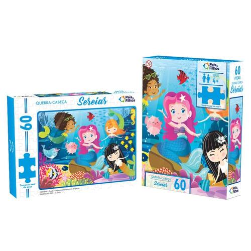 Quebra cabeça cabeças sereia 60 peças pais e filhos