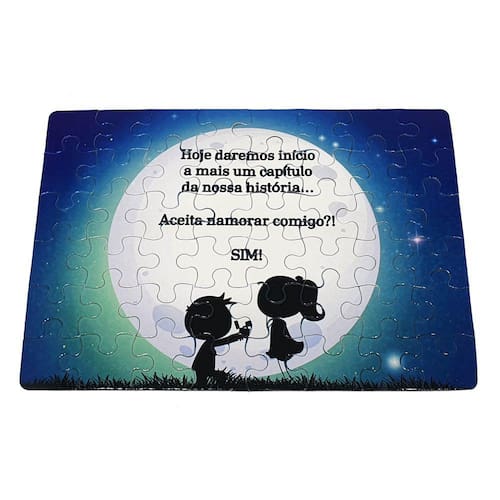 MAS O QUE VOCÊ VAI GANHAR COM ISSO? Com o Quebra-cabeça Casal de Namorados Surpresa Pedido de Namoro você vai fazer com certeza alguém feliz presenteando com essa linda lembrancinha.