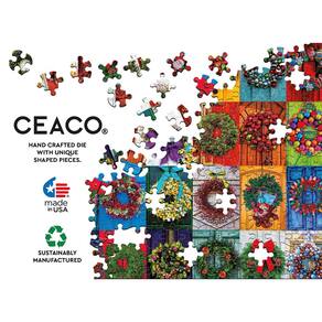 Ceaco - Guirlandas de Natal - Quebra-cabeça de 2000 peças - Contém um quebra-cabeça de 2000 peças para esta temporada de férias. - Molde feito à mão com peças de formato exclusivo. Feito nos EUA. Fabricado de forma sustentável. - Apresenta imagens coloridas. - Colecione todos os estilos da sua coleção favorita. - Ótimo para noites em família, presentes, reuniões de férias, festas e muito mais. Quebra-cabeça de alta qualidade, inovador e desafiador da Ceaco, intrigando milhões desde 1987!