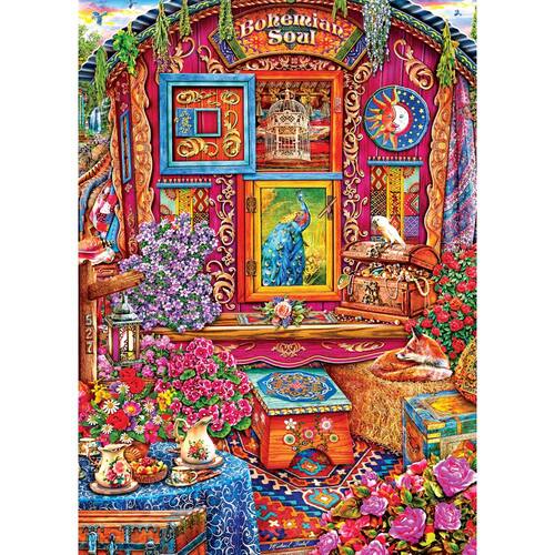 Ceaco - Michael Fishel - Bohemian Soul - Quebra-cabeça de 1000 peças - Contém um quebra-cabeça de 1000 peças. - Molde feito à mão com formas distintas, fabricado nos EUA com métodos sustentáveis. - Apresenta visuais vibrantes. - Colecione todos os estilos da sua coleção favorita. - Ótimo para noites em família, presentes, reuniões de férias, festas e muito mais. Quebra-cabeça de alta qualidade, inovador e desafiador da Ceaco, intrigando milhões desde 1987!