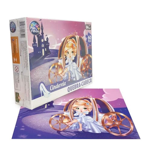 Quebra Cabeça Cinderela - 60 Peças - Pais e Filhos Encantador e muito divertido, o Quebra Cabeça Infantil Cinderela - Pais e Filhos traz a linda princesa Cinderela em sua carruagem real. Um quebra-cabeça da Cinderela estimular o desenvolvimento da sua pequena, enquanto ela se diverte montando. Produzido com material de qualidade, este quebra cabeça com 60 peças, apresenta uma linda imagem dos contos de fada da princesa Cinderela ilustrada em papel cartonado. As peças são fáceis de encaixar, contribuindo para que a criança desenvolva a coordenação motora, percepção visual e noção de espaço. O modelo é leve e fácil de transportar. A criança pode montar sozinha, mas, também, com a ajuda dos amiguinhos, contribuindo para que interaja socialmente e aprenda a importância do trabalho em equipe. Este quebra-cabeça infantil da princesa Cinderela indicado para crianças a partir de 4 aninhos. Ao mesmo tempo em que a criança estará se divertindo, também vai desenvolver a atenção, pensamento e o raciocínio lógico. Quando terminar de montar o quebra-cabeça, uma linda imagem nas dimensões de 24 cm x 39 cm é formada. Depois é só guardar na embalagem ou emoldurar e utilizar como item decorativo. Caraterísticas e especificações do produto• Produto: Quebra-Cabeça Cinderela - Pais e Filhos • Tipo: Quebra cabeça infantil do Cinderela • Componentes: 1 quebra-cabeça cartonado com 60 peças • Dimensões montado: 24 cm x 39 cm • Benefícios e vantagens: O Quebra-Cabeça princesa Cinderela eleva a autoestima, estimula o cérebro e a memória. Contribui para o desenvolvimento da coordenação motora e do pensamento e raciocínio lógico. Encoraja a interação social e aperfeiçoa a percepção visual e noção espacial. • Dimensões aproximadas da embalagem: Comprimento 25 cm X Altura 19 cm X Largura 5,5 cm • Peso aproximado: 190 gramas • Material: Papel Cartão • Certificado: CE-BRI/ICEPEX- N 01024-25 NBR 300/2004 • Marca: Pais e Filhos • Idade Recomendada: a partir de 4 anos • Outras informações: Não recomendável para menores de 3 anos por conter partes pequenas. • Aviso importante: As imagens são meramente ilustrativas. As cores e estampas dos produtos podem conter variações de acordo com as configurações da sua tela ou dispositivo. As informações são de responsabilidade dos fabricantes e fornecedores. Atenção: Agora que você sabe onde comprar Quebra-Cabeça da Cinderela - Pais e Filhos, aproveite nossas condições de pagamento. Entrega para todo o Brasil. Oferta válida por tempo limitado.