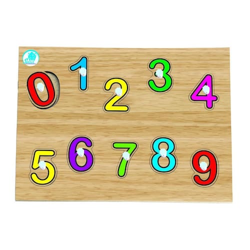 Nesta placa você vai encontrar os números de 0 a 9 que são encaixados de acordo com o seu formato. Os pinos permitem o manuseio pelas crianças menores. Faixa etária a partir de 3 anos Material: MDF Número do INMETRO: CE-BRI-INNAC-0206-001 Ean: 7898353147106