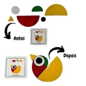 Características: - Material: Madeira reflorestada - Componentes: 48 peças, 12 cartas de desafio - Formas incluídas: meia lua, círculos, triangulos, oval, entre outros. - Indicação: Crianças a partir de 3 anos
