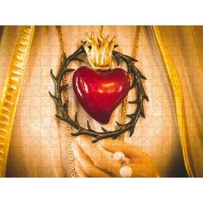 Quebra-Cabeça Da Fé Sagrado Coração Maria 300 Peças Em Mdf