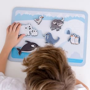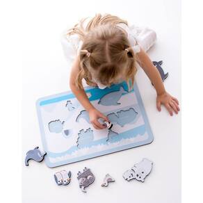 O quebra-cabeça de encaixe "Animais do Gelo" foi cuidadosamente projetado pensando nas mãozinhas pequenas das nossas crianças. Suas peças são robustas e grandes, facilitando seu manuseio e garantindo uma experiência segura e confortável para os pequenos exploradores. Enquanto as crianças encaixam as peças, desenvolvem habilidades essenciais como a motricidade fina e o pensamento lógico. Além disso, com os animais do gelo, elas exploram sua imaginação e criatividade de maneira lúdica e divertida, criando histórias e aventuras geladas.