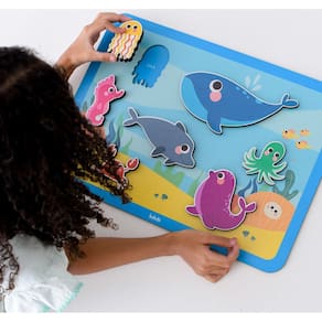 O quebra-cabeça de encaixe foi pensado para as mãozinhas pequenas das nossas crianças. As peças são robustas e grandes para facilitar seu manuseio. Enquanto encaixam desenvolvem a motricidade e o pensamento lógico. Com os animais do fundo do mar trabalham a imaginação e criatividade de maneira lúdica e divertida.