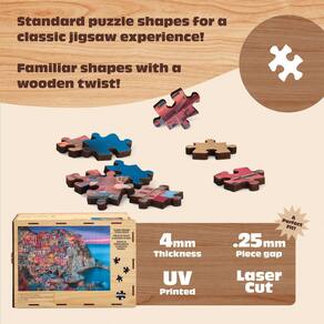 Buffalo Games - Quebra-cabeça de madeira de Cinque Terre - Peças de corte padrão - Quebra-cabeça de 500 peças - A partir de 14 anos