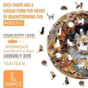 Bem-vindo ao Pijesaksa PUZZLE Se você está procurando uma maneira divertida de treinar e desafiar seu cérebro, não há melhor opção do que resolver um bom quebra-cabeça. Este hobby clássico é ótimo para melhorar sua memória de curto prazo, habilidades de resolução de problemas e atenção aos detalhes. Além disso, os quebra-cabeças também podem ajudá-lo a relaxar após um longo dia de trabalho. É um alívio de desconforto eficaz quando você quer uma pausa rápida da agitação da vida diária. Seja você um ávido quebra-cabeças ou experimentando pela primeira vez, oferecemos uma ampla seleção para você escolher. Deixe sua mente vagar por pastagens tranquilas e florestas verdejantes com estes conjuntos de quebra-cabeças! Cada peça dos nossos quebra-cabeças de madeira tem uma forma de fantasia distinta, de vários tipos de varinha mágica a estrelas e animais mágicos. Quando terminar, eles criam uma obra de arte de tirar o fôlego que você pode pendurar na sua sala de estar. Nossos quebra-cabeças são divertidos para toda a família! Resolver um quebra-cabeça juntos é uma ótima experiência de união, então por que não apresentar aos seus filhos o maravilhoso mundo dos quebra-cabeças? Esta é uma excelente escolha para noites de jogos em família. - Conjunto de quebra-cabeça com tema de gato visual 3D – Este quebra-cabeça de madeira retrata um gato deitado na caverna, olhando para fora. O gatinho está olhando à distância, curioso sobre o mundo exterior. Toda a imagem dá a você um efeito visual 3D em uma superfície plana. O quebra-cabeça de animais é cortado em formas únicas para dar a você uma experiência interessante. Venha e encontre a beleza especial em brinquedos de madeira! - Desenvolva habilidades e divirta-se – Passe tempo de lazer com nossos quebra-cabeças engraçados para adultos. Os brinquedos de quebra-cabeça são benéficos para o desenvolvimento do potencial. Quebra-cabeças desafiadores para adultos podem exercitar o pensamento lógico, tornar o cérebro mais flexível, melhorar a destreza dos dedos e a coordenação dos órgãos humanos. Os jogos de quebra-cabeça farão você esquecer as pequenas preocupações da vida e sentir a vastidão do espaço sideral! - Presente ideal e decoração de casa - Você quer escolher presentes de gato para amantes de gatos? Quebra-cabeças exclusivos são presentes ideais para aniversários, Natal, aniversários ou qualquer ocasião especial. O quebra-cabeça de madeira pode ser colocado em mesas ou pendurado em paredes para decoração de casa, tornando a casa aconchegante. Os quebra-cabeças legais para adultos são perfeitos para noites de jogos, atraindo entusiastas de quebra-cabeças de madeira, seus amigos e familiares! - Alta qualidade – Este quebra-cabeça de madeira é feito de materiais ecológicos, inodoros e muito seguros. Os quebra-cabeças são impressos com tecnologia UV, as cores são brilhantes e duradouras. São quebra-cabeças transparentes para adultos. Cada peça deste quebra-cabeça é precisamente cortada a laser. Tem uma superfície lisa e bordas limpas. Cada peça é firmemente entrelaçada. - Suporte de peça ausente - Nossos quebra-cabeças de madeira fornecem uma garantia de devolução do dinheiro em 30 dias para cada compra. Se você encontrar algum problema de qualidade ou peça faltando, sinta-se à vontade para entrar em contato conosco via Amazon ou pelo e-mail na parte de trás da caixa, forneceremos uma substituição ou reembolso para esses quebra-cabeças. Então leve os quebra-cabeças exclusivos de madeira para casa agora!