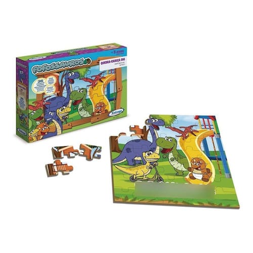 O quebra-cabeça Fofossauros contém 35 peças em madeira com a temática de dinossauros. Ele auxilia no desenvolvimento da coordenação motora, neurológico, psicomotor, capacidade de concentração, percepção visual e é fundamental na formação educacional e cognitiva da criança.Especificações• Quantidade de peças: 35• Material: Madeira Reflorestada• Dimensões da embalagem: 5 cm (Altura) x 20,5 cm (Largura) x 26 cm (Comprimento)Observação• Possui certificação Inmetro: 300/2002• Recomendado para crianças maiores de 3 anosModo de BrincarSeparar as peças com laterais retas para montagem das bordas. Organizar as demais peças por cor para facilitar a visualização do espaço que cada peça deverá ocupar. Iniciar por um dos cantos e continuar a compor a figura orientando-se pelas cores e pela ilustração.INFORMAÇÕES IMPORTANTES- O prazo de entrega informado no anúncio é apenas uma previsão, podendo sofrer alterações na data de entrega informada no ato da compra por motivo de força maior.