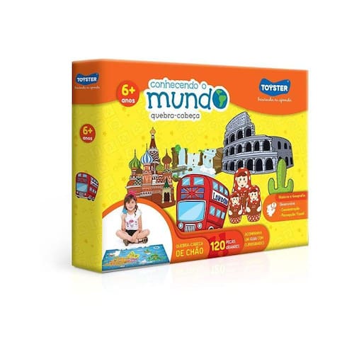 Um quebra-cabeça grande de chão com elementos da natureza e pontos turísticos para ensinar a localização dos continentes para as crianças. Estimula concentração e percepção visual. Contém: 120 peças grandes À partir de 6 anos Brinquedo com certificação compulsória do Inmetro: CE-BRI/IQB 002320 NM300/2002 - OCP 0006Referência: 2926Dimensões da embalagem: 4,4 x 24,0 x 31,3 cm.Imagem montada: 71,5 x 50,0 cm.Peso: 500gGarantia: 3 meses defeito fabricação