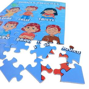Quebra-cabeça recreativo de 60 peças com ilustrações de expressões e situações do dia a dia. Ideal para momentos de lazer em família, com peças de encaixe firme e acabamento resistente.