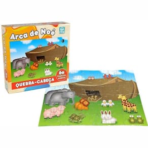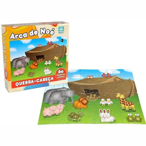 Quebra-cabeça com 60 peças em madeira reciclada, fácil de montar e resistente. As crianças vão testar sua capacidade de concentração e memória, encaixando as pecinhas e unindo os pares de animais no cenário.