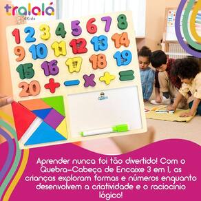 Quebra-cabeça Encaixe Divertido Numeros Lógica Quadro Branco Este brinquedo educativo e multifuncional combina diversão com aprendizado, ideal para crianças a partir de 3 anos. O Encaixe Divertido oferece três atividades principais em uma só peça: