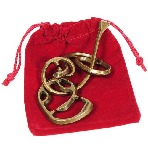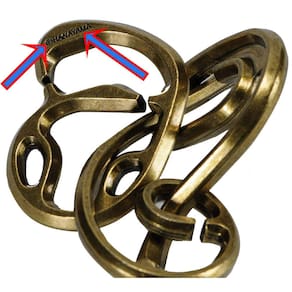 - Três peças metálicas interligadas. O objetivo é separar totalmente e depois juntar novamente as três peças em loop.