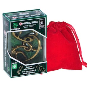Coloque seu cérebro em marcha e veja se você consegue descobrir como separar as 3 peças entrelaçadas que compõem o quebra-cabeça ENIGMA. Esse é um quebra-cabeça complicado. Esse quebra-cabeça requer muita concentração e abordagens cuidadosas. Classificado como nível 6 de dificuldade pelo fabricante (Hanayama Puzzles of Japan) em uma escala de 1 a 6, onde 1 é mais fácil e 6 mais desafiador. Sua experiência pode ser diferente. Considerada por muitos como uma das mais difíceis desta série de mais de 60 quebra-cabeças diferentes. O bloqueio é uma criação incrível. Resolvido com movimentos inteligentes. NENHUMA FORÇA é necessária. Paciência e planejamento são a chave para o sucesso. O quebra-cabeças pequeno, compacto e de bolso de metal fundido mede aproximadamente 4,5 polegadas esticadas e 0,25 polegadas de espessura. Recomendado para crianças de 13 a 105 anos. Bolsa de armazenamento Bonus soft Red com cordão de veludo. Mede aproximadamente 4 x 5 polegadas na posição plana. Itens agrupados.