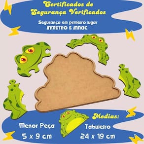 Quebra cabeça família sapo 5 peças madeira Quebra cabeça família sapo