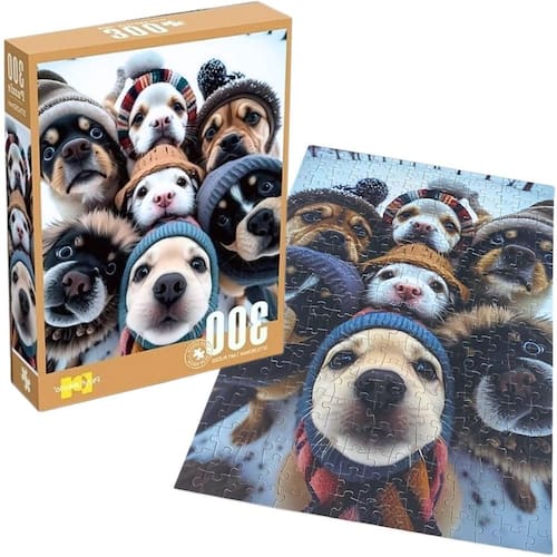 Quebra Cabeça Fofinho de Cachorros Arte de 300 Peças Castela Quebra-cabeça com 300 Peças Dogs Cãezinhos na Neve - Castela