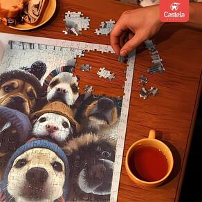 Contém 300 peças de alta qualidade com encaixe preciso. Ilustração encantadora de cãezinhos na neve. Material durável e seguro, ideal para maiores de 8 anos. Estimula a concentração, raciocínio lógico e coordenação motora. Tamanho final ideal para montagem e decoração. Desfrute de momentos agradáveis e descontraídos montando o Quebra-Cabeça Dogs Castela, um presente perfeito para amantes de pets e quebra-cabeças