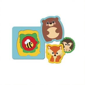 Um perfeito joguinho para levar na bolsa e brincar em vários momentos de espera. Fuja do celular e ofereça novas brincadeiras ao seu filho. Feito em madeira MDF reflorestada, contém 1 quebra-cabeça com 3 peças. Acompanha saco de pano 100% algodão.