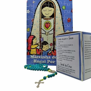Quebra-cabeça infantil nossa senhora de fátima 60 peças com terço especial O quebra-cabeça personalizado é um ótimo passatempo, brinquedo e entretenimento para pais e filhos, jovens e adultos. Nossa nova linha de quebra-cabeças infantis com temas religiosos, nestes modelos apresentamos nossa senhora de fátima de 60 peças, que a ser montado poderá ser colocado em um quadro decorativo em sua casa. Todos os quebra-cabeças desta linha possuem uma caixa exclusiva e diferenciada onde é colocada a imagem para a orientação da sua montagem, com informações, textos e oração do terço para acompanhar e aprender.