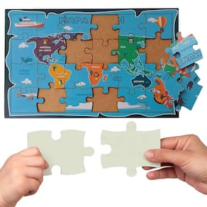 Dê a volta ao mundo com esse lindo quebra-cabeça Mapa Mundi As crianças aprendem e se divertem Os quebra-cabeças auxiliam na coordenação motora, foco e concentração.