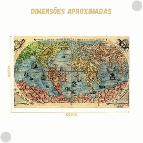 Neste incrível quebra-cabeça de 2000 peças. Você vai conhecer e apreciar este Mapa Mundi do século XVI. O italiano Ferrando Bertelli, autor deste mapa, era de uma família de editores conhecidos por publicar mapas que incluem os atlas mais antigos altália, da Grécia clássica, da África e do Oceano. 0 mapa de 1565 ilustra o mundo e os continentes como eram conhecidos em meados dos anos 1500 e é ornamentado com ilustrações de criaturas místicas fantásticas.