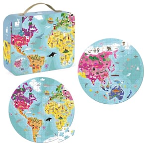 Quebra-Cabeça Redondo Mapa Mundi Dupla Face 208 Peças com Maleta - Janod
