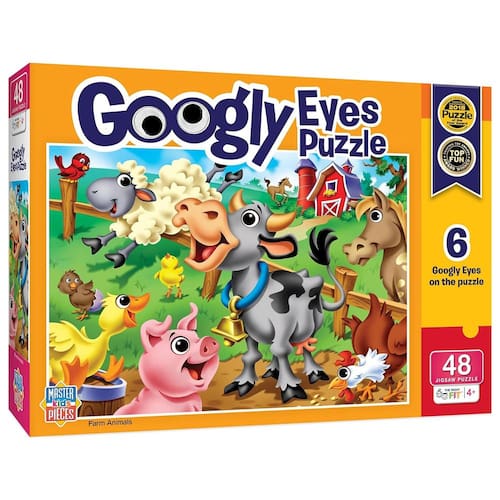 MasterPieces Quebra-cabeça de 48 peças para crianças a partir de 4 anos, animais de fazenda com olhos arregalados, jogo educativo e divertido, ideia de presente para crianças, 48 cm x 14