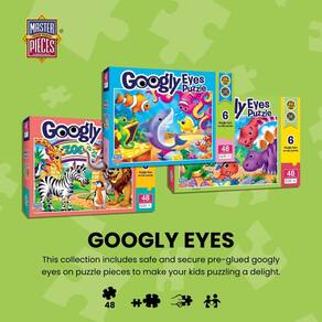 - GOOGLY EYES: 6 olhos móveis pré-montados e seguros de fábrica são embutidos no próprio quebra-cabeça e decoram a caixa colorida; grande surpresa para jovens amantes de quebra-cabeças e brincadeiras; Masterpieces é uma empresa americana de quebra-cabeças e jogos
