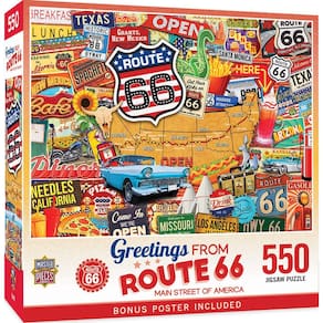 MasterPieces - Quebra-cabeça de 550 peças, Route 66 Main Street of America, divertido para adultos, família, crianças, 45,7 cm x 61 cm