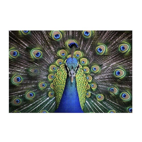 A imagem deslumbrante do pavão majestoso, com suas penas coloridas e detalhes impressionantes, é reproduzida com alta resolução e qualidade de impressão. Cada peça é feita em MDF durável, garantindo um encaixe perfeito e uma experiência de montagem suave.
