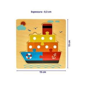 O Mini Quebra-Cabeça Navio é um brinquedo educativo que combina aprendizado, diversão e criatividade. Produzido em madeira, o tabuleiro ilustrado mede 15 x 15 x 0,3 cm. É composto por 6 peças, sendo 1 tabuleiro com 5 peças coloridas para encaixar, formando um lindo navio. Desenvolvido especialmente para crianças a partir de 3 anos, este quebra-cabeça é perfeito para estimular a coordenação motora fina, a percepção visual, a atenção e a capacidade de resolução de problemas, tudo de forma lúdica e envolvente. O design ilustrado e colorido atrai os pequenos e torna o aprendizado ainda mais prazeroso, ajudando também no reconhecimento de formas e cores. Além disso, por ser compacto e leve, é ideal para levar em passeios ou viagens. Indicado para crianças a partir de 3 anos (conforme fabricante). Conteúdo da embalagem: 1 tabuleiro com 5 peças para encaixar Medidas do tabuleiro: 15cm x 15cm x 0,3cm (CxAxL) Composição: Madeira