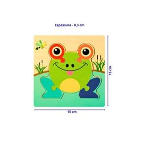 O Mini Quebra-Cabeça Sapo é um brinquedo educativo que combina aprendizado, diversão e criatividade. Produzido em madeira, o tabuleiro ilustrado mede 15 x 15 x 0,3 cm. É composto por 6 peças, sendo 1 tabuleiro com 5 peças coloridas para encaixar, formando um lindo sapo. Desenvolvido especialmente para crianças a partir de 3 anos, este quebra-cabeça é perfeito para estimular a coordenação motora fina, a percepção visual, a atenção e a capacidade de resolução de problemas, tudo de forma lúdica e envolvente. O design ilustrado e colorido atrai os pequenos e torna o aprendizado ainda mais prazeroso, ajudando também no reconhecimento de formas e cores. Além disso, por ser compacto e leve, é ideal para levar em passeios ou viagens. Indicado para crianças a partir de 3 anos (conforme fabricante). Conteúdo da embalagem: 1 tabuleiro com 5 peças para encaixar Medidas do tabuleiro: 15cm x 15cm x 0,3cm (CxAxL) Composição: Madeira