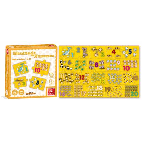 Quebra-Cabeça Montando Os Números Do 1 Ao 20 Em Madeira Quebra-cabeça Montando Os Números Do 1 Ao 10. Estimula a concentração e raciocínio lógico. 20 peças em madeira. Acima de 4 anos de idade. Dimensão embalagem: 5x22x22 centímetros. Material: Madeira Marca: brincadeira de criança. Certificado do INMETRO: CE-BRI/OCP - N 00013-01 NM 300/2002 Ean: 7898945458429