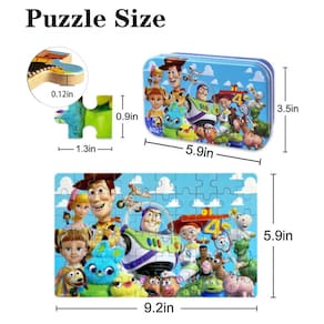 A infância é o momento mais importante na vida de uma pessoa, quando jogar é da natureza das crianças. Um dos jogos favoritos das crianças são os quebra-cabeças, dos quais eles se beneficiam muito. Nossos quebra-cabeças em personagens, de alta qualidade e bom valor. Além disso, há também muitas outras razões para você escolher o nosso. 1. Quebra-cabeças adoráveis, ajudam as crianças a desenvolver o cérebro e adquirir muitas habilidades, como imaginação espacial, paciência e análise. Os quebra-cabeças também são excelentes presentes para melhorar o relacionamento entre pais e filhos. 2. Existem variedades de padrões para você, inclusive. As peças são armazenadas em uma caixa de ferro que é muito conveniente e leva para viagens. 3. Nossos quebra-cabeças são feitos de material seguro e espesso o suficiente para reutilização. Os cortes das peças são muito suaves, permitindo fácil montagem. 4. Cada pacote vem com peças de quebra-cabeça, uma caixa de lata e uma imagem autêntico. Acreditamos que você vai se divertir com nossos quebra-cabeças. Mas se você não encontrar uma pista, conte um segredo: Números impressos na parte de trás da torta - Quebra-cabeça de 60 peças: nossos quebra-cabeças infantis são uma ótima atividade familiar para adultos e crianças de 4 a 8 anos aprenderem e aproveitarem juntos. O quebra-cabeça acabado mede 24 x 15 cm. Além disso, fornecemos um guia de imagens em tamanho real na embalagem e a imagem é clara e vibrante. - Materiais seguros: Processado em madeira superior e caracterizado por excelente robustez e resistência a arranhões. Nossos quebra-cabeças são feitos de material atóxico e insípido, resistentes o suficiente e não rasgam facilmente, tão bons para uma criança. Os cortes são lisos, permitindo fácil montagem, e cada peça se encaixa bem. - Peça em falta, não se preocupe: todos os quebra-cabeças para crianças com suporte por e-mail vitalício fácil de alcançar e uma garantia de qualidade de 2 anos. Oferecemos garantia de devolução do dinheiro em 30 dias, 60 dias de substituição e 1 ano de proteção de quebra-cabeças ausente. Esperamos que você goste de fazer os quebra-cabeças. Se precisar de ajuda com algum quebra-cabeça relacionado, . Estamos aqui para você. - Aprendizagem e diversão: as crianças adoram quebra-cabeças! Eles aprenderão enquanto brincam! Não apenas oferece diversão para as crianças, mas também as ajuda a praticar a resolução de problemas e o raciocínio espacial enquanto completam o quebra-cabeça. desafiadores e envolventes o suficiente para crianças e adultos, os quebra-cabeças infantis são a maneira perfeita para uma família trabalharem juntos. - ARMAZENAMENTO DE CAIXA DE ESTANHO RESISTENTE: Nossos quebra-cabeças são embalados em uma caixa de lata resistente que mede 13,5 cm x 8,4 cm. A caixa de lata é um bom recipiente de armazenamento e também é um local ideal para manter as peças seguras, juntas e livres de danos. Além disso, é um ótimo presente para todas as idades em aniversários e feriados.