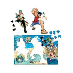Quebra-cabeça com 200 peças em formato especial de One Piece, a série de mangá escrita e ilustrada por Eiichiro Oda. Monte o Luffy e o Zoro, depois complete a cena Ajuda a desenvolver o raciocínio, a coordenação motora e estimula os sentidos da criança. Pode ser montado em 3 etapas distintas. Homologação Inmetro: 046351905853
