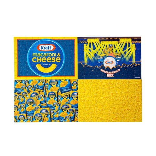 Saboreie a diversão com este conjunto exclusivo de quebra-cabeças Kraft, um deleite delicioso para entusiastas de quebra-cabeças. Monte quatro quebra-cabeças exclusivos, cada um mostrando um aspecto diferente do macarrão com queijo Kraft, desde macarrão de parede a parede até o logotipo clássico e o Cheesasaurus Rex. Imagens de alta resolução garantem designs nítidos que estimulam seus sentidos apaixonados por macarrão. As peças grossas e entrelaçadas se encaixam perfeitamente, proporcionando uma atividade relaxante e familiar. Desconecte, crie laços ou simplesmente desfrute de uma mudança de ritmo com este pacote de 4 quebra-cabeças Kraft Macaroni and Cheese de 100 peças oficialmente licenciado.