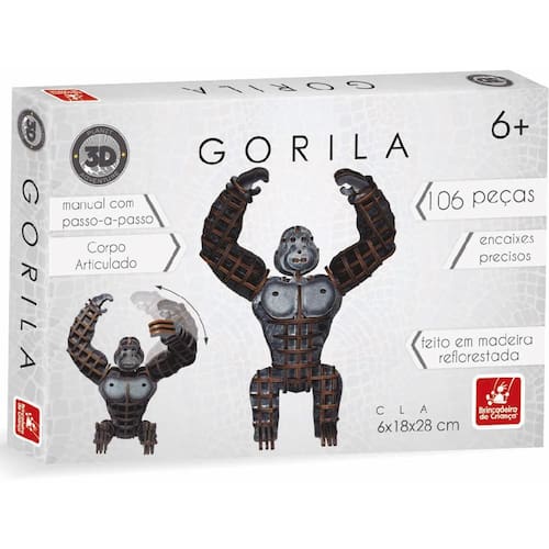 Quebra cabeça de madeira, modelo gorila articulado. Kit composto por 106 peças feito em madeira de reflorestamento. Medidas do gorila: C x A x L 6 x 28 x 18 cm. Encaixe precisos, diversão garantida