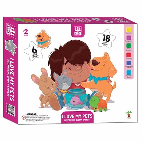 Quebra-Cabeça Progressivo - 18 peças - Madeira - I Love My Pets - Nig Brinquedos: prepare-se para uma jornada de descobertas e aprendizado com o I Love My Pets Meu Primeiro Quebra-Cabeça da NIG! Com 6 quebra-cabeças de 2, 3 e 4 Peças de madeira, este conjunto é perfeito para introduzir os pequenos no mundo dos quebra-cabeças enquanto exploram o universo encantador dos animais de estimação. Detalhes: • Com 18 peças ao total • 06 quebra-cabeças fáceis de montar • Encaixe progressivo com 02, 03 e 04 peças • Peças grandes e resistentes produzidas em madeira Informações: • Produto: Meu Primeiro Quebra-Cabeça I Love My Pets • Marca: NIG Brinquedos • Tipo: Quebra-Cabeça Infantil em madeira • Categoria: Quebra-Cabeças e Puzzles • Conteúdo: 18 peças • Recomendação: para crianças a partir de 02 anos de idade Especificações: • Referência: 0439 • Código de Barras: 7896200704397 • Embalagem (C x A x L): 31.5 x 25.5 x 06 cm • Embalagem (Peso): 0.442 Kg • Material / Composição: Madeira MDF • Registro: 006158/2021 • Certificado: Órgãos Autorizados - OCP´S (Organismos de Certificação de Produtos) Aviso: • As imagens são meramente ilustrativas • Os pesos, tamanhos e medidas são aproximados • As cores e estampas dos produtos podem ter variações • As informações são de responsabilidade do fabricante ou fornecedor