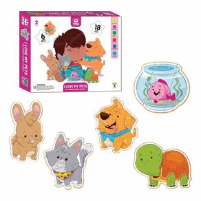Quebra-Cabeça Progressivo - 18 peças - Madeira - I Love My Pets - Nig Brinquedos