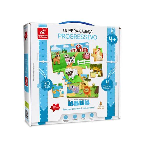 O Quebra-cabeça Progressivo Animais, da Brincadeira de Criança, é fabricado com madeira de qualidade, garantindo durabilidade e resistência durante o uso.